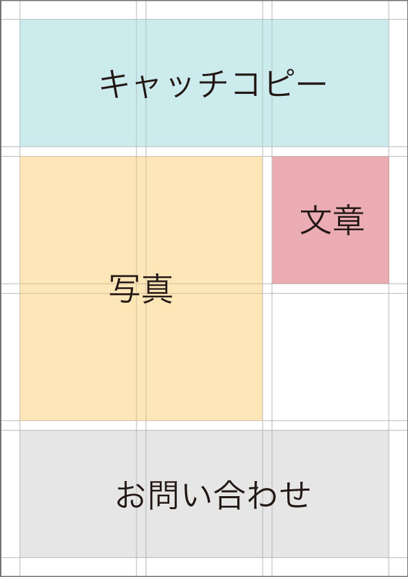 なるべく文章や写真などはグリッドに沿って 配置していきますが、 中には文章量が少なかったり写真がないときなど、 グリッドの底辺にまで配置する場合があります。