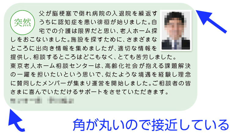 また、大きな角丸を使用するときは、角に文字や写真が近づきすぎて、はみ出しそうになることに注意しなければいけません。