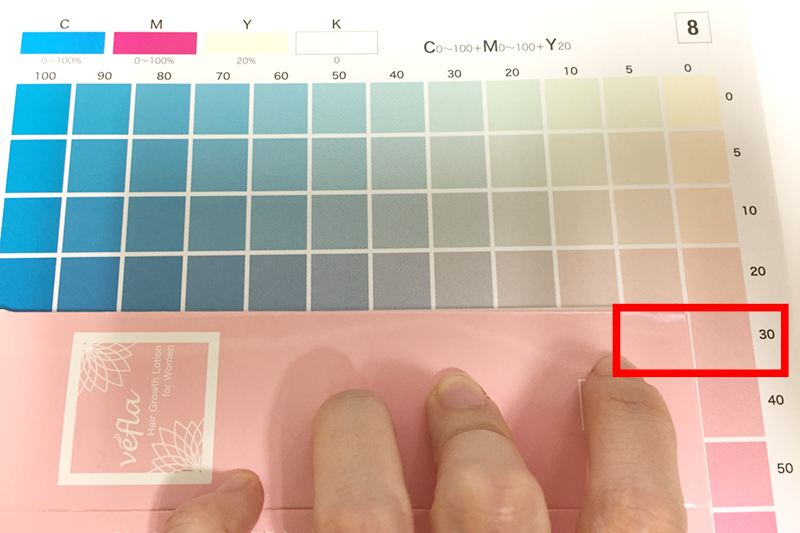 このパッケージは、C:0%、M:30%、Y:20%、K:0%という色でした。