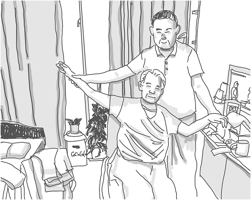 訪問マッサージ業のお客さんから実際にお送りいただいた写真をイラスト化してみました。