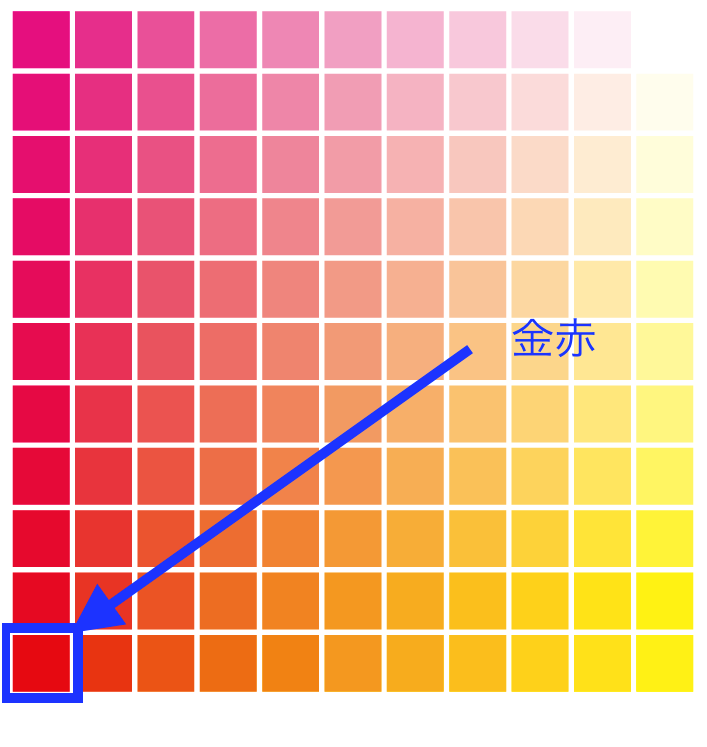 この場合に使う赤は、デザイン業界で「金赤」と言われる色です。