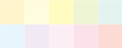 桜やタンポポ、藤のような淡い色合いで、原色に白を足したやわらかい軽やかな色です。
